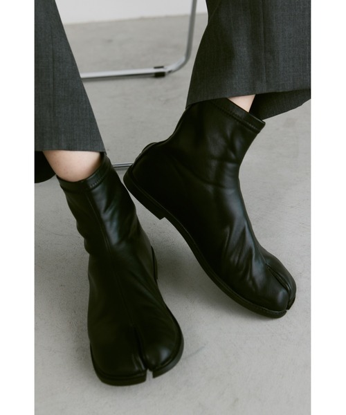 【タビフラットブーツ】トレンドの足袋デザインを取り入れたブーツ足元にモード感をプラスし、いつものコーデを格上げしてくれる一足POINT・足袋をモチーフにした、ユニークなシルエットが魅力・丸みのあるフォルムですっきりとしたモードな足元に・脱ぎ履きもしやすい踵ファスナー仕様・履き口は靴擦れしないよう、柔らかいフェイクレザーを採用・フラットタイプで安定感があり、疲れにくくストレスフリーな履き心地・スタイリングの主役にもなれるデザイン性の高いアイテムシンプルコーデを格上げするエッジの効いたタビデザイン。足元を引き締め、モードーな雰囲気に仕上げたい時におすすめの一足。ワイドパンツなどのゆったりとしたシルエットのボトムスとも好相性◎デニムに合わせてカジュアルなスタイリングにも、スラックスなどのきれいめなアイテムにも合わせやすいアイテム。どんなスタイリングにも馴染みやすいベーシックなブラックとベージュの2色展開です。■design / fabric・素材 アッパー:合成皮革ソール:合成底・推奨サイズS(23cm)/ M(24cm)/ L(25cm)※サイズ感には個人差がございます。商品ご購入後サイズ感をお確かめください。7日以内でしたら返品、交換対象になります。(返品・交換の条件をご確認下さい。)・つま先の形状ラウンドトゥ(タビ型)・重量:片足 344g(Lサイズ計測)【ブランド情報】un/ neu (アン ノイ)トレンドに"左右されない"ベーシック“おろしたての"ものを纏う高揚感お洋服をより引き立て、ワードローブに長く溶け込む。日常に寄り添うディティールを軸に、長く愛用できるアイテムをご提案致します。@unneu_officialインスタオフィシャルアカウントにて新作情報更新中◎ぜひチェックしてみてください。<返品・キャンセルについて>・着用・洗濯後の返品・ご交換は致しかねます。・商品到着後、着用前に商品を確認して頂きますようお願い致します。【商品のお気に入り登録】完売カラーの再入荷通知やラスト1点の通知プライスダウンの通知も受け取ることができます。ぜひご登録ください◎【ブランドのお気に入り登録】新商品や再入荷など、ブランドの情報をいち早くお知らせします!ぜひご登録ください◎※ご注意※・屋外の光や照明の当たり具合で、実際の商品の色味とカラー別画像の色味に若干の違いが発生する場合がございます。・詳細画像と併せてご確認の上、ご注文いただきますようお願い致します。