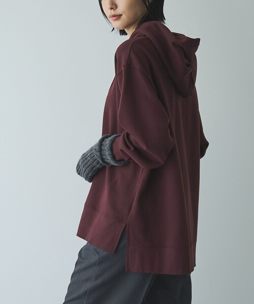 シンプルなカジュアルスタイルに抜け感を加えるビッグフーディ ■デザイン/素材 綿×ポリエステルの滑らかな生地を使用したパーカー。 シンプルながらもトレンド感のあるシルエットで、カジュアルスタイルに抜け感をプラスします。 裾のサイドにスリットを入れており、動きを出しているのも特徴。 パンツはもちろん、花柄スカートなどとのミックスコーデもおすすめ。 裏側は裏起毛素材で暖かく、程よい厚みなので秋冬シーズンに重宝します。 透け感:なし 生地の厚さ:普通 光沢感:なし 裏地:裏起毛あり 家庭洗濯:可能(ネット使用) 【注意点】 ※撮影商品はサンプルの為、実際の仕様と異なる場合がございます。 ※画像の商品は光の照射や角度、お使いのモニター環境により、実物と色味が異なる場合がございます。スタジオ物撮りの画像が実物の色味に一番近くなっております。 ※予約商品の場合、お届け予定はあくまでも目安となります。 生産の都合上、お届け時期が前後したり実店舗入荷時期とずれる場合がございますので、あらかじめご了承ください。 品名:■CVC裏起毛フーディ 品番:76206480480
