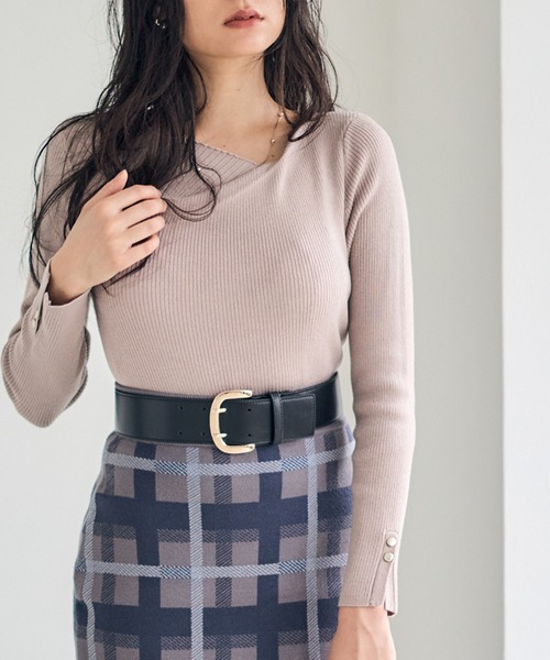 【アシンメトリーのネックデザインが目を惹くリブニット】 ●デザイン/シルエット ロングセラーのリブニットがカラーバリエーションが豊富になって登場♪ シンプルながらネック部分のアシンメトリータックがポイントのリブニットです。 今シーズンは袖口に金釦をプラスしブラッシュアップしました。 控えめな金釦が上品で華やかな印象にしてくれます。 伸縮性のあるリブ編みが程よいフィット感をプラスしすっきりと着用していただけます。 柔らかく伸縮性があるので動きやすさも抜群です。 袖口にスリットを施し、手元を華奢に見せてくれます。 ●素材 ポリエステル、ナイロンにアクリル、 ウール混の中厚手のしっかりとしたリブニット。 ストレッチが効いているので着やすさも◎ ●コーディネート フレアやタイトのスカートとのスタイリングが女性らしくおすすめです。 ●カラバリ ・クリーンな印象のオフホワイト ・柔らかい印象のピンク ・知性溢れたこなれ感ブルー ・上品で都会的なチャコールグレー ----------------------------------------------------- ■裏地:なし ■伸縮性:あり ■光沢感:なし ■透け感:なし ■生地の厚さ:普通 ■ケア方法:手洗い可能 ■着用おすすめ月:9月~2月 ----------------------------------------------------- <12TwelveAgenda ‐トゥエルブアジェンダ‐> コーデの基本はシンプルで上質なアイテムに トレンドやその時々の気分で、自分らしくMIXコーデを楽しむ。 12ヶ月のリアルクローズと、日常にちょっとのスパイスを 与えるようなライフスタイルを提案します。 #オフィスカジュアル #きれいめカジュアル #お仕事コーデ #通勤服 #フェミニン #エレガンス ----------------------------------------------------- ■商品のお気に入り登録■ 完売カラーの再入荷通知や、ラスト1点の通知、セールの通知も受け取ることができます。 ぜひご登録ください♪ ■ ブランドのお気に入り登録■ 新商品や再入荷など、ブランドのお得な情報をいち早くお知らせ!ぜひご登録ください♪