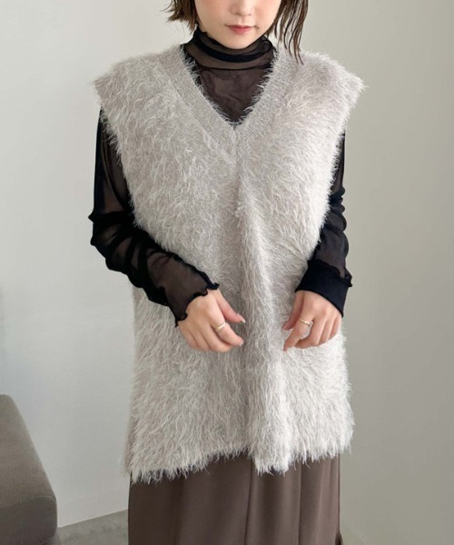 ■オーバーサイズベストは抜け感が◎■ふんわりとした見た目が目を引くオーバーサイズのベスト。長めの毛足がふんわりとし、肌当たりも柔らかく着て頂けます。お尻が隠れるほどのオーバーサイズ。シルエットは広がらず落ち感◎サイドにスリットが入っているのでフレアスカートとも相性抜群。インナーにシアーやロンTを入れたり、今の時期はノースリニットと着用したりと色々な着こなしで楽しめます。ーーーーーーーーーーーーーーー透け感:なし裏地:なし伸縮性:あり光沢感:なし生地厚さ:普通洗濯方法:手洗い可※詳しいお手入れ方法は商品についているタグをご覧くださいーーーーーーーーーーーーーーー※ご利用のモニター環境により、実際の色味と多少異なる場合がございます。… information … 欲しいitemをお気に入り登録(♡マークをclick) ・お買いのがし対策…完売itemの再入荷やラスト1点の情報をお知らせ ・欲しいitemをお得にget…price downになったらいち早くお知らせ ・スムーズ検索…ZOZOのお気に入りアイテムページで簡単checkできるから、再検索不要♪