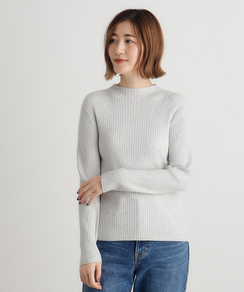 チクチクしにくくて暖かい ベーシックアイテム 【デザイン】 ワードローブに1枚は必ず欲しい、ベーシックなリブプルオーバーです。 編み続きでほどよくタイトなハイネックデザインがインナーとしても1枚着としても活躍します。 秋冬らしいスタイリングに欠かせないアイテムです。 ベーシックな無地とボーダーの展開。 ボーダーはきれいめなパネルデザインに。 【素材】 ・水分を吸って発熱する吸湿発熱機能 ・静電気が起こりにくい帯電防止機能を備えた機能糸を使用しています。 暖かみのあるタッチときれいめな表情が特長です。 チクチクしにくく、柔らかで肌当たりが良いのも嬉しいポイント。 【スタイリング】 着回しのきくベーシックなデザイン。 コンパクトシルエットなので、トレンドのジャンパースカートやキャミワンピースのインナーにも活躍します。 色違いでワードローブに欲しいアイテムです。 ※製品寸法は平置きのスペックとなっております。こちらの商品は伸縮性があります。 ※照明の関係により、実際よりも色味が違って見える場合があります。また、パソコン・スマートフォンなどの環境により、若干製品と画像のカラーが異なる場合もございます。 【24AW】 モデル情報:身長166cm B80 W59 H86 着用サイズ:02(M) 店舗へのお問い合わせ商品番号:768-19068 ●製品寸法: 01(S):着丈55cm B70cm 袖丈55cm 肩幅31cm 02(M):着丈57cm B73cm 袖丈56cm 肩幅32cm 03(L):着丈59cm B76cm 袖丈57cm 肩幅33cm 04(LL):着丈61cm B79cm 袖丈58cm 肩幅34cm 05(3L):着丈63cm B82cm 袖丈59cm 肩幅35cm 備考: