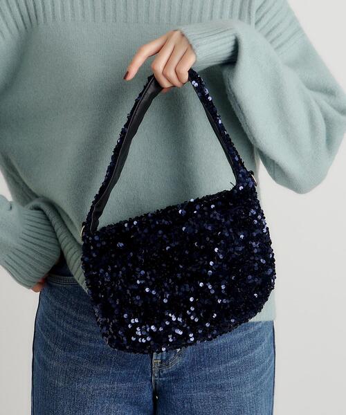 【デザイン】 コーデのポイントに映えるスパンコールショルダー。 ワイドハンドルで手持ちでも、ロープショルダーで斜め掛けもできる2WAYです。 しっかりマチがあり、コンパクトながらお出かけに必要はアイテムはしっかり収納力できます。 口元は安心のマグネット付きです。 デイリー使いはもちろん、華やかさもあるのでオケージョンでも使っていただけます。 ショルダーは結び仕様で取り外し可能です。 ※ポケット数:内側×2 ※照明の関係により、実際よりも色味が違って見える場合があります。また、パソコン・スマートフォンなどの環境により、若干製品と画像のカラーが異なる場合もございます。 【24AW】 店舗へのお問い合わせ商品番号:769-09053 ●製品寸法: 00:高さ17cm 幅(上部)22cm 幅(下部)20cm マチ13cm 持ち手上がり16cm 備考:重量:約245g(サンプル重量)