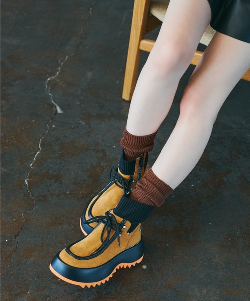 トレンドと存在感を叶えるブーツが登場 アッパーはトレンドのモカシンデザインを取り入れ、存在感漂う足元に仕上がるレースアップブーツ。 厚底ヒールがインパクトを与え、安定感のある履き心地とスタイルアップ効果にも。 内側がジップなので、着脱も簡単。 履き口がゴムなので、筒周りも痛くない。 ソールはイタリアのソールメーカーVibramソールを使用。 高いグリップ力と、優れた耐久性でデザインだけではない優秀な1足に。 ワイドパンツなどでメンズライクにも、あえてフェミニンなスカートやフレアワンピースを合わせたミックスコーデもおしゃれ上級者で素敵に。 トレンドライクなコーディネートから、ベーシックスタイルに合わせても◎ ※商品を受け取ってから8日以上が経った商品、ブランドタグや梱包を失くされた商品、また、着用感が見られる商品は返品交換を受け付けられないことがございます。予めご了承くださいませ。 【 VEGE/ベジ 】 素材へのこだわり、鮮やかなイロドリ、大地に還るサスティナビリィ、ヘルシーでフレッシュ それはまるで野菜。 野菜"Vegetables"からVEGEと名付けました。 人にも環境にも優しいものづくりを軸に、今の時代を駆け抜ける女性の為に 野菜=VEGEから得られるエネルギーで、より輝く人生を歩いてほしい。 そんな想いをこめ、VEGE は 2020 年サスティナブルを意識したブランドとして立ち上がりました。 私たちがすべき事は、生産背景と環境に配慮し負荷を最小限に抑える事。 生産者が無理なくきちんとしたモノづくりを出来る環境を整える。 高品質な商品を作る事で、使い捨てではなく長く使用してもらえるものを作り上げる。 リサイクル素材は率先して使用する。 当たり前の様で当たり前に出来なかった事を私たちは改めて見直し、常に改善し続ける。 ※ご注文いただいた予約商品のお届け時期の確認は、注文履歴ページより行えます。