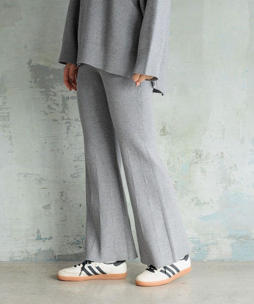 ラフな着心地と足長効果、どちらも嬉しいリブニットパンツ。ーーー◇Point◇[1]チクチクしないノンウールニット[2]フレアシルエットで足長効果[3]ストレスなしのリブニットパンツーーー◇Design◇膝上がやや細く、裾に向かって広がるフレアシルエットのリブニットパンツ。ボリューミーなシューズを合わせる事で更に足長効果が期待出来ます。股上が深めなので、しゃがんだ時も安心。シャツやスウェットなどの手持ち服にも合わせやすく、堅く見えがちなジャケットの着崩しアイテムとしてもオススメです。同シリーズのハーフZIPやカーディガン合わせでコーデが簡単に完成します。◇Fabric◇柔らかくソフトな肌触りが毎年人気のファインタッチシリーズ。素足で履いても、チクチクしません。【同素材のアイテムはこちら】【HEREIAM】マシンウォッシャブル可/ファインタッチZIPニットスカート(160604)【HEREIAM】マシンウォッシャブル可能/ファインタッチハーフZIPニット(160547)【HEREIAM】マシンウォッシャブル可/ファインタッチBIGカーディガン(160562)※屋内外の光や照明の当たり具合で、実際の商品の色味とカラー別画像の色味に違いが発生する場合がございます。 色味はスタジオ撮影の詳細画像にてご確認ください。-------------------------------------≪お買い物をよりお楽しみいただくために≫◆商品のお気に入り登録(ハートマークをクリック)完売カラーの再入荷通知や、完売間近の通知、セールの通知も受けることができます。◆ブランドのお気に入り登録新商品や再入荷など、いち早くブランドのお得な情報を受け取ることができます。-------------------------------------