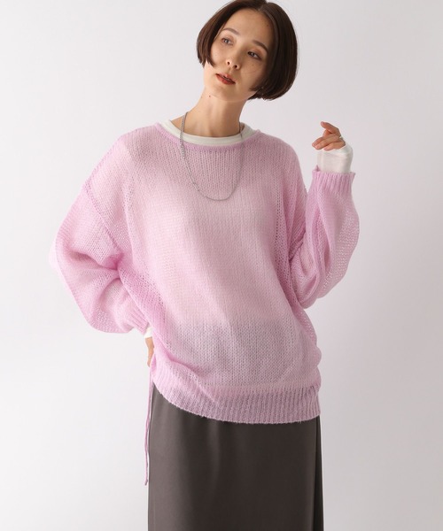 透け感と季節感のある表情が今年らしいニットプルオーバー【デザイン】軽量でさらっとした肌触りでふんわりとしたボリュームを出してくれる1枚です。女性らしい抜け感のある首元と、ゆったりとした袖がポイント。裾には紐があり絞ってデザインをプラスしたり着丈を調節できる仕様になっており、お好みのバランスでお使いいただけます!紐は垂らしても、リボン結びにしても◎【スタイリング】・ロゴTシャツやカラーインナーを入れたレイヤードスタイルがおすすめです。※繊細な編み方のニットなので、ひっかけには十分ご注意ください。---------------------------------------------------【気になる商品はお気に入り登録がおすすめ!】・在庫残りわずか・再入荷・セールの情報などの通知を受け取ることができます。気になる商品は♡をクリックして、「お気に入り登録」しましょう!【ショップ・ブランドのお気に入り登録も!】新商品や再入荷、セール、クーポンの配布など、いち早くお得な情報を受け取ることができます。---------------------------------------------------