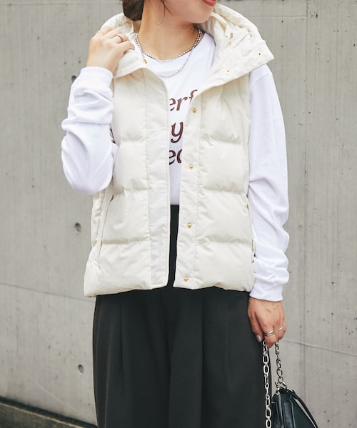 安心感のあるホールドで包み込む商品ポイント・表面生地はツヤがなく、 弱ストレッチ性もある素材を使用したダウンベスト・様々な箇所にあるドローコードがシルエットを チェンジできて着方のアレンジ可能・コーデのアクセントになる程よいコンパクトさで使い勝手も◎おすすめコーディネートシンプルなベストのためカラーニットやチェックシャツ、ワンピースなど組み合わせるアイテムが幅広く、着回し力抜群!着丈をやや短めにする事で、ボトムを選ばず合わせやすく仕上げた1着おすすめスタイリングアイテム異素材ラインイージーパンツ2タックワイドパンツカットジャガードタイトスカートニットマーメイドスカート素材表地 ポリエステル100%裏地 ポリエステル100%中わた・ダウン80%・フェザー20% 洗濯方法:ウエットクリーニング透け感:なし裏地:なし伸縮性:なし生地の厚さ:厚手光沢:なしポケット:あり【スタッフ着用コメント】《RINO》身長:148cm/着用サイズ:F体型:普通/骨格:ストレート/パーソナルカラー :ブルベ冬トレンドライクなダウンベスト♡やや肉厚な生地感でホールド感が着心地よし!骨格タイプストレート:全体的に立体型で筋肉質。ひざ下はすらっと細め。ボディラインにメリハリがある。ウェーブ:上半身が薄く、華奢。緩やかな曲線のボディライン。下半身に重心があり女性らしい体型。ナチュラル:筋肉や脂肪があまり感じられない体型。腰の位置が高く骨や関節が目立ちやすい。--------------------------------------------------------------------------------【注意点】※画像の商品は光の照射や角度、お使いのモニター環境により、 実物と色味が異なる場合がございます。あらかじめご了承下さいませ。--------------------------------------------------------------------------------【『♡』をクリックでお気に入り登録】・ラスト1点や再入荷の通知が届きます。--------------------------------------------------------------------------------
