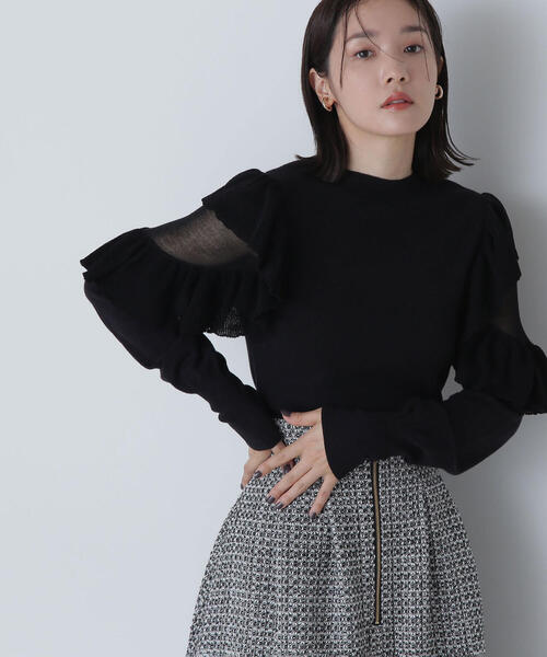 <お出かけ・デイリーにおすすめ> 袖にフリルをあしらったデザインスリーブと腕に程よい透け感のシアー糸を取り入れたニット。身頃はほどよいフィット感のベーシックなサイズ感で、一枚着としては勿論、レイヤードのインナーにも着まわせます。 <素材> 肌触りが良く、柔らかい風合いのハイゲージ糸を使用しています。 <詳細> 仕様・開閉なし 裏地・なし 透け感・なし / 光沢・なし / 伸縮性・なし 生地の厚さ・普通 ※モデルの着用画像の場合、光の当たり具合により、実際の色味と異なって見えることがございます。 【ZOZOでのお買い物をもっと楽しむために!】 ■ブランド・ショップのお気に入り登録 ・いち早く新作アイテムや限定クーポンなどのお得な情報を受け取ることができます! ■商品のお気に入り登録 ・完売商品の再入荷通知や、残り1点の通知、各種セール通知も受け取ることができ、よりお得にお買い物頂けるチャンスがあります!