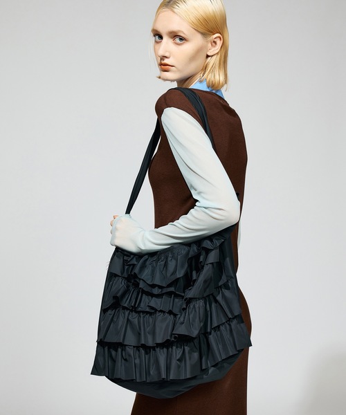 折りたたんで収納可能なフリルナイロンショルダーバッグ。 パッカブル仕様になっているので、内側に付いたポケットにひっくり返して収納することでコンパクトになり、持ち運びやすくなっています。 生地は軽量ナイロンを使用し、耐久性も高いので機能性にも富んでいます。背面にはオリジナルグラフィックプリントが入っています。 (商品お問い合わせ NON-25S-0234)、ANLIO、ZOZOTOWN ANLIO、2ショップにて在庫発売ANLIO→会員割引、ZOZOTOWN ANLIO→paypay、ZOZOポイント還元 各ショップによりサービス内容が異なります NON TOKYO 2025 S/S COLLECTION 1世紀にわたりリアルワークウェアを展開するUNIVERSAL OVERALLや、1937年創立のアメリカのアンダーウエアブランド.miller。アメリカで1903年に創業されたキャップブランドNEW ERA、環境にも優しく日常にちょっとした刺激と遊び心をデザインをコンセプトに、東京浅草で生産するシューズブランド、U-DOTなど、世界中から支持されるブランドとの豪華コラボアイテムを筆頭に、人気の転写プリントシリーズをはじめ、透け感のあるシアー素材や、フリル、ギャザー、花柄など、女性の魅力を引き上げるディテールなど、デザイン美とともに、服としての機能美こだわったコレクションを展開。