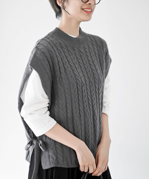 ★2025/AW 再入荷★ケーブルニットの大人カジュアルなベスト暖かな雰囲気のあるケーブル編みのニットベスト。細ケーブルがラフすぎず大人のカジュアルスタイルにぴったりな1枚です。開きすぎないクルーネックで上品に。両サイドのリボンが女性らしいコーデを演出してくれます。シャツやブラウス、ロンTなど、インナー次第でスタイリングの幅が広がるアイテム。※再入荷の場合、生産時期が異なるため色・素材・サイズ・デザイン等多少異なる場合がございますので予めご了承ください裏地なし伸縮性なし薄手編み加減や染めの具合でデザインやサイズ等異なる場合もございます洗濯:手洗い可▼お気に入り登録でお得がいっぱい▼~商品をお気に入り登録~再入荷・ラスト1点などの通知を受け取ることができます!~ブランドをお気に入り登録~《rps》の新商品・再入荷情報をいち早くお届け!