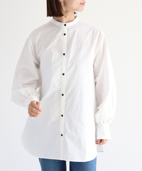 バンドカラーシャツとフリルのつけ襟がセットになった、マルチウェイなアンサンブルアイテム!!◇Point◇ややオーバーサイズのバンドカラーシャツにフリルのつけ襟がセットになったアンサンブル。セットでの着用はもちろん、別々でも楽しめるデザインが魅力です♪ゆったりとしたオーバーサイズなので、1枚着としてはもちろん、羽織としても活躍してくれます◎つけ襟の紐は長めに設計されており、お好みのサイズ感やボリューム感に調節可能。リボン結びにしてコーデにアクセントをつけるのも◎。袖部分にはギャザーを施しボリュームスリーブに。気になる二の腕部分もカバー♪◇Material◇綿100%の張り感のある素材で、自宅でのお手入れも簡単○快適な着心地で、長時間の着用もストレスなく楽しめます。◇Coordinate◇汎用性の高いバンドカラーシャツはカーディガンやジャケットのインナー使いに最適です。フリルを付けるとキレイ目コーデに早変わり♪ Vネックカーディガンが合わせやすいですよ。ボトムはモードに合わせるならワイドスラックスやフレアスカートがおすすめです。デニムやイージーパンツでカジュアルダウンもこなれ感が出て素敵です◎。※照明や天候により実際の色味と異なって見える場合がございます。ご了承くださいませ。【キーワード】#Y2K#バレエコア#オフィスカジュアル
