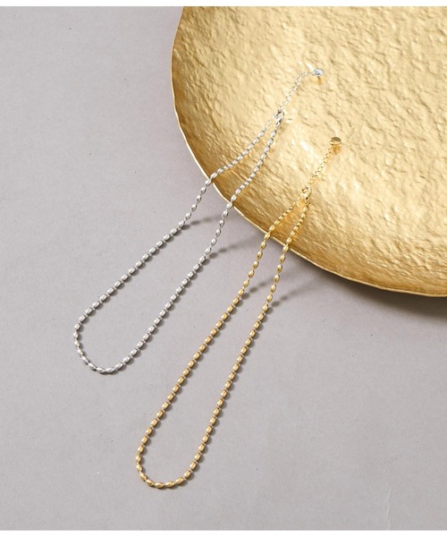 落ち着いた華やかさのゴールドとシルバーカラーのライスチェーンネックレス。●合わせるアイテムや服を選ばないデザインなので、単品使いはもちろん重ね付けも◎●シンプルなスタイリングの仕上げにプラスすることで程よいアクセントになります。<サイズ>全長:41cm~48cm(調節可能)ステンレスアクセサリーは極めてアレルギーを起こしにくく、金属アレルギーの方でも着用して頂けます。汗、水にも強く、錆びにくいという特徴があり、また腐食や耐熱にも優れているので、長く着用していても老朽化しにくいというメリットがあります。※ステンレスアクセサリーはアレルギーが起きにくい素材ではありますが、全ての方にアレルギーが絶対に起きないことをお約束するものではございません。万が一皮膚に異変が生じた場合にはご使用を中止して下さい。※錆に強く、変色しづらい特徴はございますが、永久に製品状態を保証するものではございません。使用状況によって劣化の速度は異なります。あらかじめご了承下さい。※モデル着用画像は光の当たり具合で色味が違って見える場合がございます。※商品の色味の目安は、商品単体の画像をご参照ください。【お買いものをお楽しみいただく為に!】▼商品のお気に入り登録完売カラーの再入荷通知や、ラスト1点の通知、セールの通知も受け取ることができます。▼ブランドのお気に入り登録新商品や再入荷など、いち早くブランドのお得な情報を受け取ることができます。