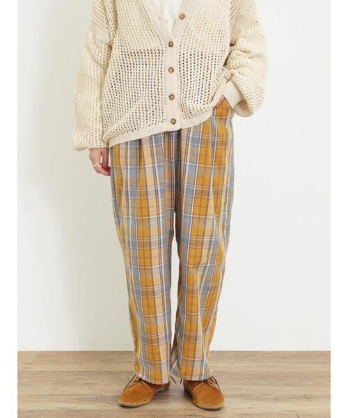 あたたかみのあるチェック柄がシーズンらしさを演出するイージーパンツ。 ストレートシルエットで、レッグラインをすっきりと見せてくれるのも嬉しいです。 ウエストは総ゴム仕様になっており、安心感のある穿き心地◎ ニットやシャツなどを合わせたりと、幅広い着こなしのアレンジが楽しめるアイテムです。 ※商品画像は、撮影環境やお客様のご利用のPC・スマートフォンのモニター環境などにより実物と色味に差異がある場合がございます。 【その他採寸】 F ウエスト:[ゴム仕様]62cm
