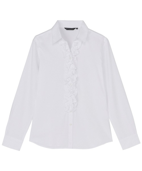 ■ COFREX(R) コフレックス ■ さらっとしたしなやかな着心地で 身体を優しく包むのが魅力的な コフレックス生地を、きっちり感ある ドレスシャツのシルエットで仕上げ、 快適なビジネススタイルに。 華美すぎず、甘すぎない前立フリルが ビジネスシーンでも使いやすい一枚。 スーツとのスタイリングはもちろん、 お手持ちのパンツやスカートと 合わせても◎なアイテムです。 【衿型】スキッパー衿 【BRICK HOUSE by Tokyo Shirts / ブリックハウス バイ トウキョウシャツ】業界トップ水準を誇るノーアイロンの形態安定加工は自宅で洗濯可能でお手入れ簡単!高度な縫製技術を用いた高付加価値シャツでありながら選ぶことを気軽に楽しめます。ベーシックから多様なデザインまで幅広いバリエーションで豊富なサイズ展開で、ディテールの隅々にまで織り込んで一枚一枚丁寧に仕立てられたシャツです。