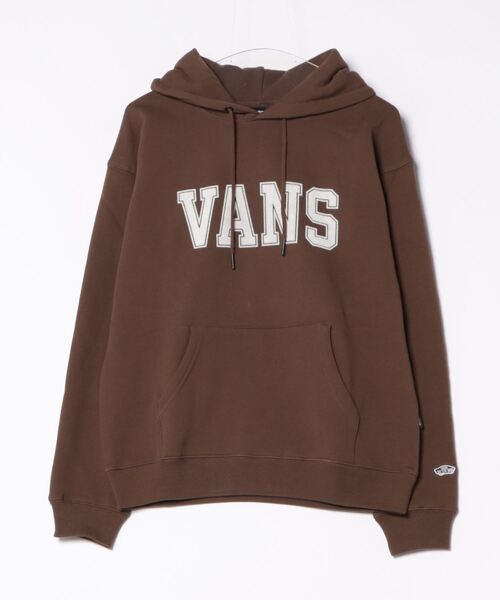 ブランドロゴをフロッキープリントで施したプルオーバーフーディ。 左袖のスケートロゴがポイントになったデザイン。