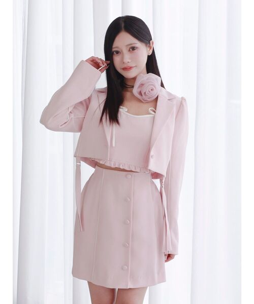 【ヘムガータージャケット】程よいクロップド丈で脚長効果が期待できるジャケットです。キレイめのシルエットにガーターデザインを施し、大人フェミニンコーデが完成します。ガーターは金具から下が取り外せるので、お好みで調整可能です。共生地のビスチェやスカートに合わせたセットアップはもちろん、ワンピースやワイドパンツに合わせたコーデもオススメです。----------------------------------------------♡商品のお気に入り登録完売カラーの再入荷通知や、ラスト1点、セールの通知をお知らせ致します。♡ブランドお気に入り登録新商品や再入荷など、いち早くブランドの情報を受け取ることができます。----------------------------------------------※サイズは、実寸サイズを測っているため多少誤差がでる場合があります。※重量は目安として、参考にして下さい。※商品画像は着用イメージです。 光や角度により、実物と色味が異なる場合がございます。 商品の撮影はサンプルで行っている為、カラーやサイズ等に変更がある場合がございます。 ご覧のモニター環境により実際の商品と多少色味が異なって見える場合がございます。 ご了承ください。