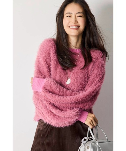 シンプルながらも素材に遊び心のある一癖ニット。羽毛のようにふわふわとした長い毛足が特徴のフェザーヤーンを使用しており、思わず触れてしまいたくなる質感に。パッと目を惹く質感が特徴の主役級アイテムです。首元と袖口にリブがついており、甘くなりすぎないように仕上げてくれます。タイトスカートやきれいめパンツで合わせればオフィスなどのきちんとしたシーンに、デイリーならデニムなどのカジュアルスタイルもおすすめ。様々なコーディネートに合わせてお楽しみいただけます。■素材肌触りがよく、ふわふわとしたフェザーヤーンを使用。非常に軽量なナイロンを100%使用しており、快適な着心地に。【透け感】なし【生地の厚さ】やや厚手【伸縮性】なし