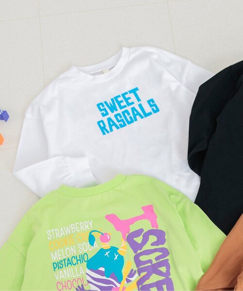 ★BREEZE・HALLOWEEN COLLECTION★ 大きな背面プリントが目を惹く長袖Tシャツ★ みんなが大好きなお菓子をモチーフにした 迫力のあるプリントデザインで POPなカラーがコーデのポイントに♪ アイスクリーム・ドーナツ・グミ・ガム きみのすきなお菓子はどれかな・・・? 普段使いはもちろん ハロウィンコーデにもおすすめの1枚です★ 【取り扱い表示】 40℃を上限に洗濯機で洗濯、デリケートアイテムモード、ネット使用、漂白剤を使用禁止、色物は同系の色と一緒に、洗濯後直ちに取出し、タンブル乾燥不可、日陰で吊り干し、低温でアイロン、商業ドライクリーニング不可 【ご注意事項】 この商品のプリント部分は洗濯を繰り返すことにより、起毛・光沢が徐々に消失、ひび割れ、脱落することがあります。出来るだけ美しくご利用頂くために次のことにご留意下さい。 ○ 洗濯、保管の際、プリント面同士が重ならない様にご注意下さい。 ○ プリント部分のもみ洗いやタンブル乾燥機の使用はお避け下さい。 ○ 洗濯後、すみやかに広げて下さい。 ○ 脱水は弱く、形を整えてから干して下さい。 ○ プリント部分にアイロンを当てないで下さい。 ※商品により多少の誤差が生じる事がございます。あらかじめご了承下さい。 ※ご使用のパソコンやブラウザの環境により、実際の色とは多少異なる場合がございます。 ※モデル着用写真についてはイメージの為、実際の商品とカラーや仕様が異なる場合がございますので、商品画像をご覧ください。 【 BREEZE -ブリーズ- 】 WEAR A HAPPY SMILE こだわりと遊び心のつまった、着ると「笑顔」のWEAR、「着たい」がいっぱいのSHOP そんなHAPPY SMILEに出会える場所がBREEZE