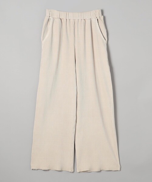 ゆったりシルエットでデイリーアイテムにちょうど良い穿き心地とトレンド感 同素材のナロースカート(品番:76706450231)もご用意しております。 ■デザイン/素材 すっきり見えながらも表情豊かな細リブ素材を使用したリラックスできる穿き心地のイージーリブパンツ。 ウエストは総ゴム+ドロスト仕様で着脱もしやすいデザイン。 裾はロックステッチで始末して、軽やかな印象に仕上げています。 こなれ感を演出するピグメント加工で古着のような風合いも魅力。 シルエットは程よいワイド感があり、トレンドにもぴったりです。 Tシャツやスウェットプルオーバーといったカジュアルなトップスと合わせたり、ワンピースの下に穿いたりと何かと使える1枚。 透け感:なし 生地の厚さ:普通 光沢感:なし 裏地:なし ウエストゴム:あり サイドポケット:あり 家庭洗濯:可能(ネット使用) 【注意点】 ※撮影商品はサンプルの為、実際の仕様と異なる場合がございます。 ※画像の商品は光の照射や角度、お使いのモニター環境により、実物と色味が異なる場合がございます。スタジオ物撮りの画像が実物の色味に一番近くなっております。 ※予約商品の場合、お届け予定はあくまでも目安となります。 生産の都合上、お届け時期が前後したり実店舗入荷時期とずれる場合がございますので、あらかじめご了承ください。 品名:ピグメントリブイージーワイドPT 品番:76406450354