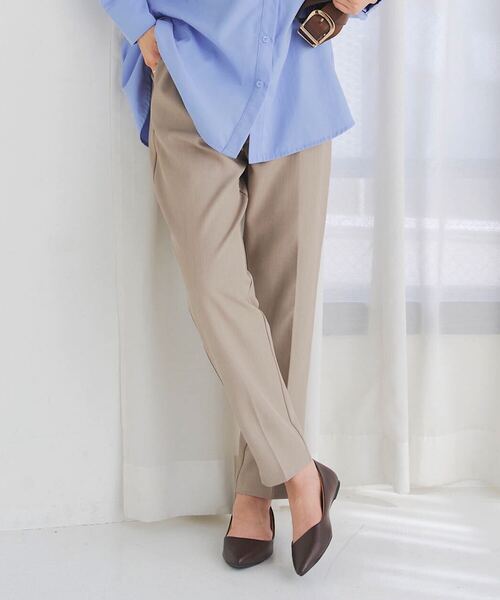 ■選べるサイズM・Lサイズに加え、PM・PL(プチサイズ/低身長さん向け)サイズもご用意!ラクに穿けるキレイ見えスラックス。センタータックを施し、脚のラインを美しく演出。ウエストは全周ゴム仕様で着脱しやすく動きやすさも快適。きちんと感があるのでオフィススタイルにも着られON/OFF活躍してくれる一本です。【素材・サイズ感】シワになりにくいさらっとドライタッチな高見えツイル素材。緩やかなテーパードシルエットでゆとりはありつつ、フロントのタックがお腹周りをすっきりと見せてくれる立体デザイン。低身長さんから高身長さんまでお選びいただける4サイズ展開も魅力です◎【STAFFコメント】シワになりにくい、ノーアイロンで穿けるカラーパンツ。ウエストゴムで少しだけ伸縮性もあってしゃがめるのでノンストレスです。洗濯できるイージーケアなのでデイリーに使えて、通勤通学のオフィスカジュアルにお仕事服としておすすめです。ハイウエストで美脚見え&低身長の私も穿ける丈短めサイズがあるのも嬉しいポイント♪両サイドにポケット付きで、きれいめからカジュアルまで着回し力抜群の高見えテーパードパンツです。※【伸縮】なし/【淡色透け】ややあり/【濃色透け】なし/【裏地】なし《KOBE LETTUCE ー神戸レタスー》 プチプラレディースファッションからコスメまで、トレンドアイテムを豊富に取り揃えております。 毎シーズン発売されるインフルエンサーとのコラボ商品はSNSでも話題に。
