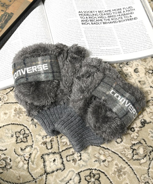 CONVERSE boa gloves with plaid fleece band/ボアグローブ/指ぬき/手袋/コンバース