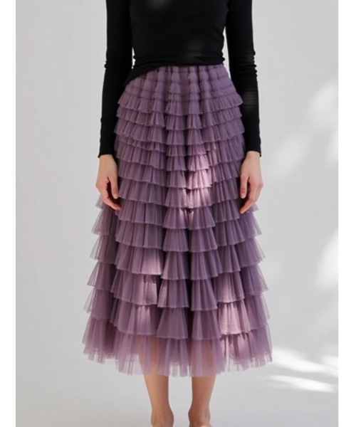ティアードフリルがフェミニンな雰囲気のチュールスカートふんわりとしたティアードフリルがフェミニンな雰囲気を演出するチュールスカート。ウエスト部分はゴム仕様で、穿き心地の良さも嬉しいポイントです。ドレッシーなスタイルにはもちろん、カジュアルなアイテムと合わせたスタイリングもおすすめです。------------------透け感:あり生地の厚さ:薄手裏地:あり伸縮性:ややあり------------------※撮影時のライティング、PCやスマートフォンの環境により写真の色味が実際の商品と異なって見える場合がございます。ご了承の上お買い求め下さいませ。※モデル着用画像は実際の色と多少異なる場合がございますのでマネキン画像をご確認ください。《 お知らせ 》▼商品のお気に入り登録お気に入りアイテムの値下げ・再入荷・在庫1点などの通知を受け取ることができます。▼ブランドのお気に入り登録新商品や再入荷、セール、クーポン配布などお得な情報を受け取ることができます。 ※ご注文いただいた予約商品のお届け時期の確認は、注文履歴ページより行えます。