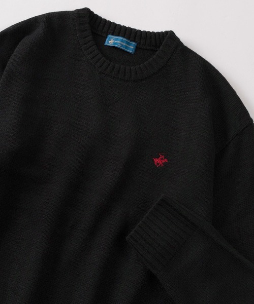 【71】【BEVERLY HILLS POLO CLUB/ビバリーヒルズポロクラブ】ワンポイントロゴ刺繍 無地/ボーダー クルーネックニット
