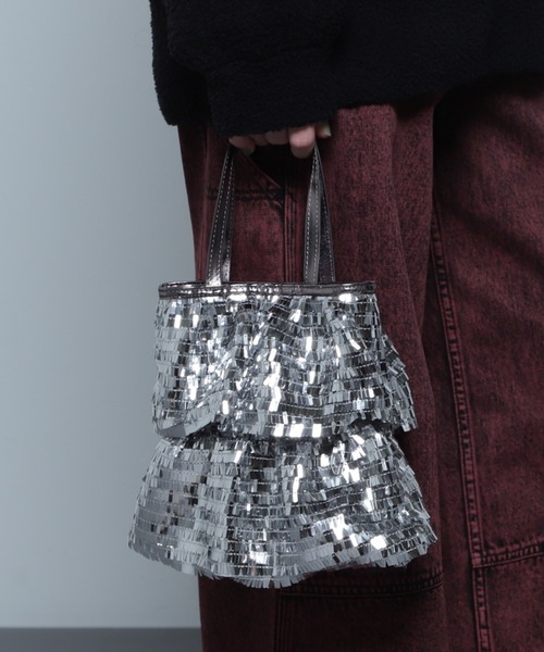 スクエアスパンコールがフリルになったミニトートバッグ・内ポケット×1・500mlボトル収納可能・ブラック、シルバーの2色展開【スタッフレビュー】スパンコールをあしらった「CASSELINI」のミニバッグは、カジュアルなコーディネートに華やかなアクセントをプラスしながら気軽に持てるデザイン。間口にマグホックがついており安心感のある仕様で、スマートフォン、お財布、ポーチ等お出かけに必要な最低限のモノのが収まるサイズ感です。デイリーカジュアルはもちろん、ラフなパーティーシーンにもお使いいただけます。【お気に入り登録】♡商品のお気に入り登録♡再入荷・残り1点・セールの通知を受け取ることができます。♡ブランドのお気に入り登録♡新商品・再入荷/・ショップおすすめトピックスなど、ブランドの情報を受け取ることができます。【取扱注意事項】モデルの着用画像の場合、光の当たり具合により、実際の色味と異なって見えることがございます。色味は、商品生地の画像をご参照ください。【メーカー品番:243-110509】