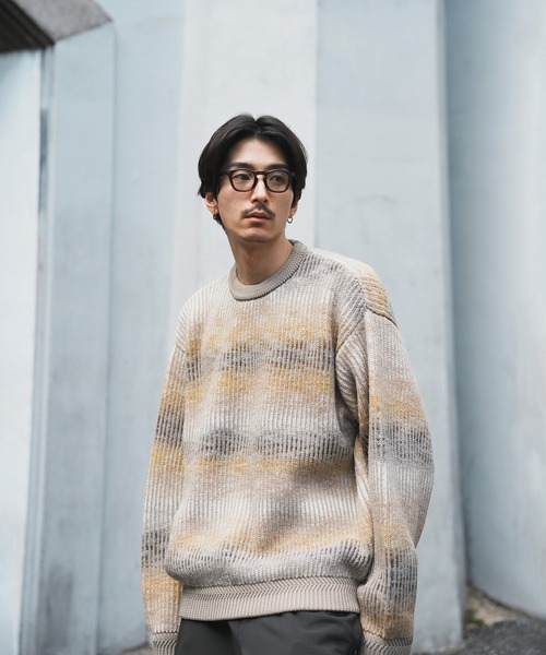UNION STATION WEB Exclucive Item グラデーションボーダー柄で着映えする、オーバーサイズニット●しっかりとした肉感にオリジナルのグラデ配色を施した旬なニット●1枚でサマになるトレンド感溢れるサイズ感●シンプルなボトムスに合わせるだけで、お洒落なスタイリングが完成します肩のラインが落ちたデザインで、リラックス感のあるオーバーサイズ。ニット特有の上品な雰囲気と、ゆったりサイズで適度にカジュアルダウン。ジョガーパンツやワイドパンツと合わせたスタイルがオススメ。首元は襟のあるシャツやハイネックTとも重ね着しやすいクルーネック。単体使いしても、脇役的にインナーとして使っても活躍が期待できます。保温性にも優れており、これからの季節に大活躍間違いなしな1枚です。-推奨サイズ-Mサイズ ~175cmLサイズ 175cm~ ※商品画像は、光の当たり具合やパソコンなどの閲覧環境により、実際の色味と異なって見える場合がございます。予めご了承ください。※素材により着丈が異なります。サイズ表をご確認の上、ご購入ください。【お買い物をお楽しみいただく為に】▼商品のお気に入り登録完売カラーの再入荷通知や、ラスト1点の通知、セールの通知も受けることができます。▼ブランドのお気に入り登録新商品や再入荷等、いち早くブランドのお得な情報を受け取ることがきます。※他のキャンペーンにより、期間中に価格が変動する場合があります。※セールは予告なく終了させていただく場合もあります。