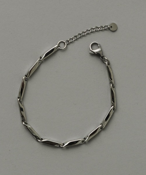 【エッジの効いた個性派チェーン】 ●光を反射するニュアンス感あるチェーン ●スタイリッシュに決まるスリムブレスレット ●オーソドックスなアイテムに飽きた方にもオススメ ひし形にカットが入った個性的なチェーンが周りと差の付くアイテム。 細身のシルエットながらも、角度によって光を反射して力強い印象を持ったブレスレットです。 【2024 Autumn/Winter】【24AW】 【サージカルステンレスとは・・】 ・通常のステンレス材よりも、より腐食に強く錆びにくい。 ・医療器具にも使用されており、金属アレルギーに対応した素材。 ・お風呂などの水に触れるシーンで付けっぱなしにしても、錆びたり変色したりしにくい。 ※アレルギーの原因はさまざまです。すべての方に起きないことをお約束するものではありませんので、予めご了承ください。また、症状が出た場合は直ちに使用をお控えください。 ※アレルギー体質の方や体調が低下している方など、かぶれることがありますので十分にご注意ください。 ※サージカルステンレスは、腐食に強く錆びにくい特徴がございますが、製品状態を永久保証するものではございません。使用状況によって劣化は異なりますので、ご了承ください。 ※その他お取り扱いに関しましては、商品に付属のアテンションタグをご覧ください。 総重量 : 約9.5g ※商品画像は、光の当たり具合やパソコンなどの閲覧環境により、実際の色味と異なって見える場合がございます。予めご了承ください。 ※商品の色味の目安は、商品単体の画像をご参照ください。 ▼お気に入り登録のおすすめ▼ お気に入り登録商品は、マイページにて現在の価格情報や在庫状況の確認が可能です。 お買い物リストの管理に是非ご利用ください。 -