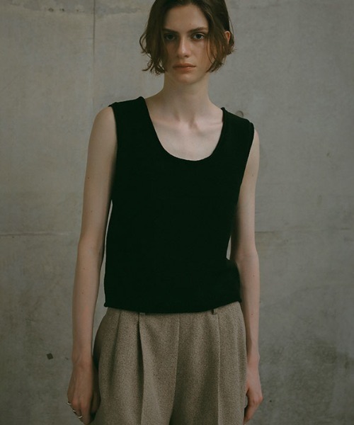 ローゲージに編み立てたショートプルオーバーとスリーブレスプルオーバーがセットになった、2ピーストップス 軽量ながらふっくらとした風合いが特徴のバルキーアクリルとコットン素材の混紡糸を使用、 それぞれ編み地の密度を替えており、立体感のあるシルエットが特徴です。 スリーブレスプルオーバーは、深めのUネックで女性らしさを演出。 1枚ではもちろん、これからの季節にはジャケットの中に仕込んだりと着回し易いデザインです。 ショートプルオーバーは、程よくゆったりとしたシルエットとドロップショルダーがポイント。 短丈で仕上げており、2ピースでレイヤードした際に絶妙なニュアンスを生み出します。 レイヤードでも、それぞれ単品としても着用いただける、着回し力の高いアイテムです。 ーーーーーーーーーーーーーーーーーーー 【洗濯表示】 液温は40℃を限度とし、手洗いによる洗濯処理が可能です 漂白処理はできません タンブル乾燥は出来ません 日陰の平干しがよい アイロン仕上げ禁止 石油系溶剤(蒸留温度150℃~210℃,引火点38℃~)での弱いドライクリーニング処理ができます 非常に弱い操作のウエットクリーニングができます ーーーーーーーーーーーーーーーーーーー ▼商品のお気に入り登録 お気に入りアイテムの再入荷や残り1点の通知を受け取ることが出来ます ▼ブランドのお気に入り登録 新作アイテムの入荷や人気アイテムの再入荷、 タイムセールやクーポンなど、いち早くブランドのお得な情報を受け取ることができます ーーーーーーーーーーーーーーーーーーー ※画像の商品はサンプルです。 ※商品を使用前に、タグ等に記載されている「取り扱い上の注意書き」、「洗濯表示」を必ずご確認ください。 ※商品画像は、光の当たり具合やパソコンなどの閲覧環境により、実際の色味と異なって見える場合がございます。 ※商品の色味は、スタジオ撮影の画像をご参照ください。 ※着丈は弊社寸法方法によりネックポイントから採寸しております。