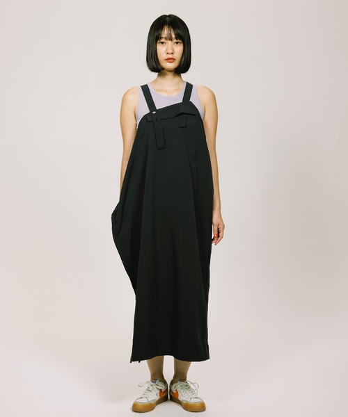 折り紙感覚で形を作っていったジャンパースカート。 右脇の合わせが、デザインポイントかつスリットも兼ねています。 あえて外側に見返しや三つ折りの端を見せて、デザインポイントにしています。 3段階で肩紐の長さを変えられます。 マックローリーという機能素材が使われていて、速乾性が高く軽い仕上がりです。汗をかいてもベタつきません。 撥水加工も施されているので雨の日や水辺で遊ぶときにも便利です。 model Ran Taniguchi 168cm 着用サイズONESIZE Nanami Keyes 166cm 着用サイズONESIZE SNEEUW 2025 SPRING & SUMMER COLLECTION 1930年代初頭におけるロシア帝国・ソビエト連邦における各芸術運動をロシア・アヴァンギャルドと総称します。 文学、演劇、美術、音楽、建築、映画、デザインなど多岐にわたります。 デザイナー自身が好きなロシア・アヴァンギャルドとともに、新たに習い始めたクラシックバレエがデザインソースになっています。バレエにて長い歴史を誇るロシアともリンクし、SMEEUWらしいフィルターで描き出したコレクション。 ANLIO OFFICIAL、ZOZOTOWN にて在庫発売 ANLIO OFFICIAL→会員割引、ZOZOTOWN →paypay、ZOZOポイント 各ショップによりサービス内容が異なります
