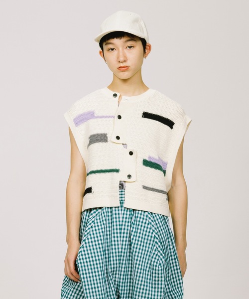 SNEEUW 2025SS COLLECTION ロシアアヴァンギャルドの芸術家、ロトチェンコ+ステパーノワ夫妻の手掛ける舞台衣装から着想を得たグラフィカルなカーディガン。 互い違いに組み合わさった前端や不規則なボーダー、立体的な編地が、コーディネートの良いポイントになります。 重ねるもの次第で長い季節お楽しみいただけます。 model Ran Taniguchi 168cm 着用サイズONESIZE Nanami Keyes 166cm 着用サイズONESIZE (商品お問い合わせ snw31-21)、 ANLIO、ZOZOTOWN ANLIO、2ショップにて在庫発売 ANLIO→会員割引、ZOZOTOWN ANLIO→paypay、ZOZOポイント還元 各ショップによりサービス内容が異なります SNEEUW 2025 SPRING & SUMMER COLLECTION 1930年代初頭におけるロシア帝国・ソビエト連邦における各芸術運動をロシア・アヴァンギャルドと総称します。 文学、演劇、美術、音楽、建築、映画、デザインなど多岐にわたります。 デザイナー自身が好きなロシア・アヴァンギャルドとともに、新たに習い始めたクラシックバレエがデザインソースになっています。 バレエにて長い歴史を誇るロシアともリンクし、SMEEUWらしいフィルターで描き出したコレクション。