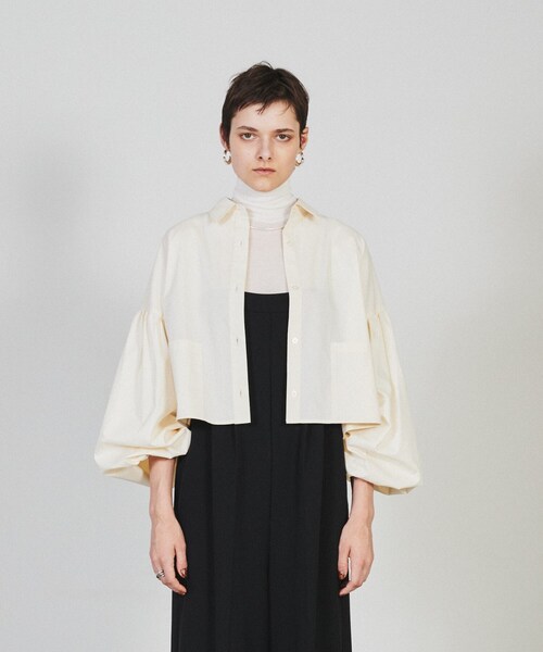 【デザイン】 ふんわりとしたボリューム袖とクロップド丈がバランスの良いシャツブラウス。 バックスタイルにはギャザーを加え、立体感のあるシルエットにこだわりました。 カフスはゴム仕様で、手首をのぞかせると華奢見えが叶うデザインに。 ふんわりとしたシルエットに衿を足すことで、甘くなりすぎない大人な雰囲気をプラス。 【素材】 コットン混の柔らかい質感で、さらっとした肌触りの良い素材。 ※ウォッシャブル加工(手洗い可能) 【着こなしポイント】 ブラウスとしてはもちろん、前ボタンを開けて羽織りとしての着用もおすすめです。 すっきりとしたボトムと合わせると、バランスの取れたスタイリングに仕上がります。 気温が下がり始めた秋の季節は、インナーを入れてレイヤードスタイルでも活躍してくれます。 ーーーーーーーーーーーーーーーーーーーーーーーーーーーーーーーーーー 気になるアイテムはお気に入り登録がおすすめ! お気に入り登録で、再入荷通知やお値下げ情報をお知らせ。 お得な情報をいち早くお届けいたします! アイテムページにある、 マークをクリックして追加できます。 ーーーーーーーーーーーーーーーーーーーーーーーーーーーーーーーーーー ※照明の関係により、実際よりも色味が違って見える場合があります。また、パソコン・スマートフォンなどの環境により、若干製品と画像のカラーが異なる場合もございます。 店舗へのお問い合わせ商品番号:R91-89013 ●製品寸法: 02(M):着丈47cm B126cm 袖丈46cm 肩幅67cm 備考: