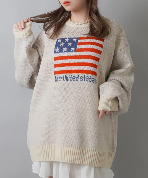 【程よいルーズシルエットの国旗柄オーバーサイズニット】●おすすめポイント1:流行りの星条旗デザイン2:シンプルデザインなのでオールテイストに合う3:ビッグシルエットなので体系カバーも【ファッション系統】・ガールズストリート・韓国ストリート・カジュアル・ストリート女子※掲載画像(商品、モデル着用とも)につきまして、撮影環境やお客様の閲覧されますパソコンや携帯電話キャリアによって、実際の商品とは多少異なった色に見える場合があります。また表示のサイズ感も実物とは若干異なる場合もございますので、予めご了承ください。※タグ・バーコードのついたシールには、サイトのご案内と異なるカラー名が記載されていることもございます。ご了承ください。- - - - - - - - - - - - - - - - - - - - - - - - - - - -【「お気に入り登録」でお得な情報が届きます】・「商品のお気に入り登録」で再入荷通知、ラスト1点の通知、セール通知などを受け取ることができます。・「ブランドのお気に入り登録」で新商品、人気アイテムの再入荷など、お得な情報を受け取ることができます。- - - - - - - - - - - - - - - - - - - - - - - - - - - -