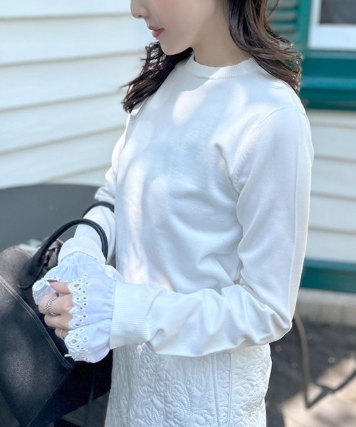 2wayエッセンシャルニット■商品説明襟と袖口のレースが取り外し可能なプルオーバーニット。全て取り外しが可能になっているので付け外しのバリエーションで4通りになり、シチュエーションで変えてコーディネートを楽しんで頂けます。程よくコンパクトなサイジングなので、さまざまなボトムスと相性が良く、軽さとハリ感、弾力性のあるニットなので、チクチクが苦手な方でも着やすい素材感に仕上がりました。■生地感透け感:ホワイトのみやや有、裏地:なし、生地の厚さ:普通、伸縮性:あり、ポケット:なし■サイズ(cm)【OneSize】身幅 約46、肩幅 約35、袖丈 約61、着丈 約60※平置き採寸のため若干のブレがございます。~*~*~*~*~*~*~*~*~*~*~*~*~*~*▼ 商品のお気に入り登録 ▼完売カラーの再入荷通知や、ラスト1点の通知、セールの通知も受け取ることができます。ぜひご登録ください♪▼ ブランドのお気に入り登録 ▼新商品や再入荷など、ブランドのお得な情報をいち早くお知らせ!ぜひご登録ください♪