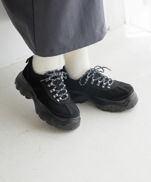 ■デザイン■軽量なソールを使用したマウンテンシューズ。紐に伸縮性があるので脱着の際には紐をほどかずに着用いただけるようになっています。つま先裏には抗菌防臭効果のあるデオトラントテープを使用しています。■スタイリング■今年は甘めのスタイリングの外しとして着用する着こなしがオススメ。ソックスを合わせてルーズな足元を楽しむことも可能です。とことんカジュアルな着こなしも。