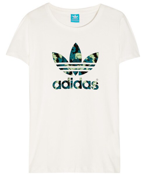 adidas Originals's soft organic cotton-jersey T-shirt is emblazoned with the brand's iconic 'Trefoil' logo - seen here in a green , blue and black Hawaiian print. Wear this sporty style to the gym or with denim at the weekend. Multicolored organic cotton-jersey Slips on 100% organic cotton Machine wash Designer color: Core White