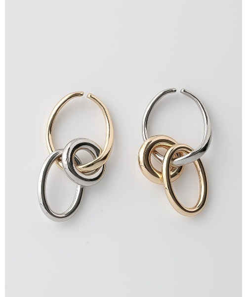 2023/7/28再販より、リニューアル!金属アレルギーのお客様に、より安心してお使い頂けるよう・ニッケルフリーの18Kコーティングに変更となりました! 大きさ・形の異なるフープを組み合わせたバイカラーのイヤーカフ。 耳の軟骨部分に引っ掛けるように装着いただくだけで、まるでピアスのように見えます。 2つのリングは取り外しが可能なので、気分に合わせて組み合わせを変えて楽しめる、アレンジ幅のあるデザイン。 ※開口部を大きく開きすぎると、中心から割れる・ヒビが入る・メッキが割れる等の恐れがございます。お取り扱いの際はお気をつけください。 ※お耳の形(軟骨が柔らかい、浅い)によって、装着できない場合がございます。 <Detail> サイズ直径:約2.5cm モチーフ大縦:約2.1cm モチーフ小縦:約1.2cm 重量片耳:約3.7g 素材:合金(ゴールド/18KGP・シルバー/ロジウムコーティング) 楕円パーツ&正円パーツ:樹脂(ゴールド/18KGP・シルバー/ロジウムコーティング) 注意点 ■お客様のモニター環境により、掲載写真と実際の色味が異なる場合がございます。 ■シルバー925やK10・K18素材は""柔らかく・曲がりやすい""特徴がございます。お取り扱いにはお気を付けください。 ■一般的に金属アレルギー対応とされる素材でも、すべての方にアレルギー反応が起こらないとは限りません。ご了承くださいませ。 ■商品の素材表記に関しましては、生産工場先の記載に従っております。 <ブランド> ChooMia(チュミア)|大人のための高見えアクセサリー ブランド名の「ChooMia(チュミア)」は、Choose(選ぶ)とMia(私)の掛け合わせ。 「明日の私を選ぶ・見つける」といったワクワク感と選ぶ楽しみを届けたい想いで付けました。 子供の頃、心がときめく'可愛いもの'を集めるのが好きだった 可愛いものに囲まれて、ふんわり笑顔が広がる日々 大人になるにつれ、少し忘れてしまったそんな感覚 「今日はどのアクセサリーにしようかな」と、 ジュエリーボックスから取り出して欲しい。 ChooMiaのアクセサリーを身につけることで、 ちょっぴり背筋が伸びて凛とした私になる 「輝く私のための、愛着をもてるアクセサリー」 を、提供します。 <公式SNS> Instagram:@choomia_store LINE:@choomia Youtube:@choomia TikTok:@choomia_store