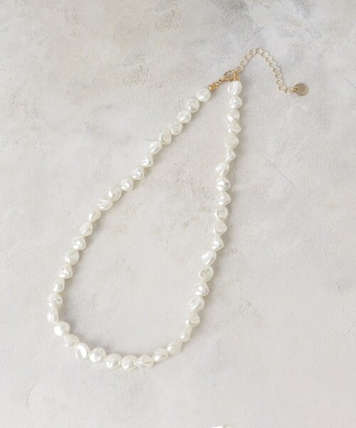 コーディネートの幅が広がるシンプルなフェイクパールのネックレス 【デザイン】 少し変形型のフェイクパールネックレス。 シンプルかつショートネックレスなのでどんなスタイリングにも合わせやすいアイテム。 フォーマルなコーディネートから、カジュアルまで幅広く使用頂けます。 ※照明の関係により、実際よりも色味が違って見える場合があります。また、パソコン・スマートフォンなどの環境により、若干製品と画像のカラーが異なる場合もございます。 店舗へのお問い合わせ商品番号:C71-39138 ●製品寸法: 00:全長35.5cm 幅0.8cm 備考: