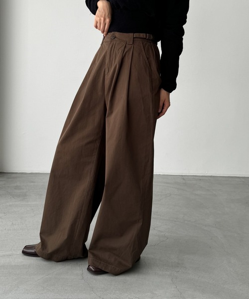 デザインゆったりとしたサイジングとサイドのベルトが特徴のグルカパンツ。ウエストの後ろはゴム仕様なのでストレスフリーに履いていただけます。素材コットン100%のさらりとした生地で着心地が良く、デイリーユースに◎コーディネート短丈のトップスや、タックインしてベルトデザインを見せる着こなしがおすすめ!綺麗めからカジュアルまで、合わせるアイテム次第で様々なコーディネートをお楽しみいただけます。El mar(エルマール)El mar はスペイン語で『海』海に向かうときはだれでもワクワクする。洋服を選ぶとき、袖を通すとき、同じように心が踊るアイテムを提案したい。そんな『ワクワク』な気持ちを込めて El mar はデビューしました。-------------------------------------生地の厚さ:厚い〇〇●〇〇薄い伸縮性:なし透け感:なし裏地:なし光沢:なし・3ポケット・ウエスト後ろゴム仕様(サイドアジャスター付き)-------------------------------------取扱い:手洗い・おしゃれ着洗剤をご使用ください。・クリーニングネットをご使用ください。・濃い色と白 ・淡色物は分けて洗ってください。・素材の特性上、摩擦に弱く特に湿潤時に受ける摩擦は変色や白化の原因となります。脱水機は使用せずに、軽く押し洗いをし、タオルを挟んで水分を取り、形を整えて陰干ししてください。・洗濯で多少縮むことがあります。洗濯後はすばやく形を整えて干してください。タンブラー乾燥はお避けください。・アイロンの際は当て布をご使用ください。・着用時の汗や摩擦により、他の衣類や鞄などに色移りすることがありますので、淡色系との着合わせはご注意ください。・摩擦や引っかけにご留意ください。※取り扱い及びお手入れ方法については、商品についている取扱表示、洗濯表示にてご確認下さい。※照明の関係により、実際よりも色味が違って見える場合があります。またパソコン・スマートフォンなどの環境により、若干製品と画像のカラーが異なる場合もございます。※商品の色味は、商品アップ画像をご参照ください。