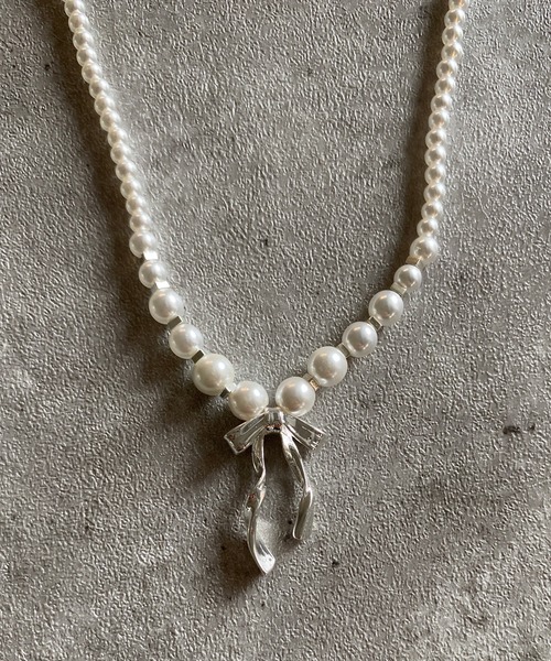 COMMENT □小さめパールのネックレス □トレンドのリボンモチーフ □タイプの違う2種類展開 ATTENTION □商品写真はご利用のモニター環境や照明により、実物と色みに差異が生じる場合がございます。 □商品画像はサンプルのため、色味やサイズ等の仕様に変更がある場合がございますので、予めご了承ください。 □商品によって同サイズや同色等であっても各商品毎に誤差が生じる場合がございます。 □サイト上のカラー名と、お届け商品に記載されているカラー名が異なる場合がございます。 【poiregnée-select items-】 合わせるだけでトレンド感のあるコーディネートにアップデートできるファッションアイテムを、poiregnée独自の感性でセレクト。