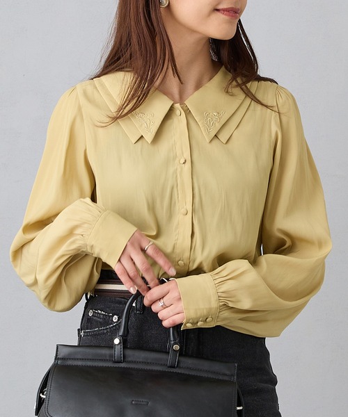 大きめのフラットカラーが特徴的なブラウスは、とろみのある素材感やボタニカル刺繍でクラシカルな印象にシフト。ニットベストやジャンスカのインナーブラウスとして着用して頂くと、首周りの抜け感がレイヤードスタイルをすっきりとバランスよく演出し、秋のお洒落を一段階グレードアップさせてくれます。二重に重なった衿がさりげなく存在感を放ち、1枚でもメインでしっかりとお使い頂けるアイテムです。アンティーク風にくるみボタンのディティールにしたのもポイント。☆★お買い物をお楽しみいただく為に★☆★商品のお気に入り登録完売カラーの再入荷通知や、ラスト1点の通知、セールの通知も受け取ることができます。★ブランドのお気に入り登録新商品や再入荷等、ブランドのお得な情報をいち早く受け取ることができます。