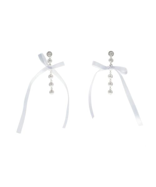 サテン素材のリボンが可愛いピアスです。 パール部分は揺れる仕様なので、女性らしい印象を与えてくれます。 ※GLDにはREDのリボン