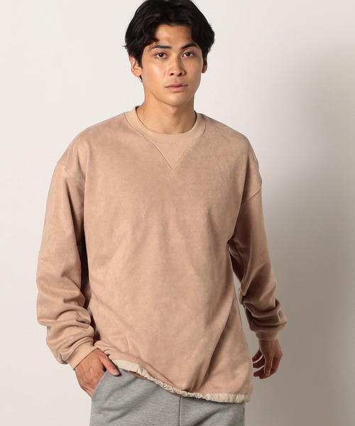 表面はマットなマイクロファイバー起毛素材、裏には保温性、肌触りの良いボア素材を使用した1枚でもインナーでも使える素材感がコーディネートのアクセントになるスウェット・デザイン脇にはポケットが付いていているので1枚で着用した時にも便利です。衿のガゼット、袖のエルボーパッチなどスウエットのデザインをアクセントに袖のリブは細めにすることで全体をすっきりと見せています。裾のコードを絞ることでシルエットを変化出来るのもポイントです。・シルエット程良くゆとりのあるサイズ感で、アウターのインナーに着用するのもおすすめです。大き過ぎないサイズ感なので女性の方にもおすすめです。・ファブリック表面はマットなマイクロファイバー起毛素材、裏には保温性、肌触りの良いボア素材を使用しています。表面感があって手触りもよい素材感で厚みもあって裏もボアなのでアウターのような暖かさがあります。・スタイリングゆとりのあるシルエットで1枚で着てもインナーでも素材感がアクセントになりトレンド感のある着こなしに仕上がります。ダウンなどのアウターのインナーとして合わせると素材感が協調されてより新しい着こなしのアクセントにする事ができます。ボトムやアウターに合わせて裾を絞ってシルエットを変化させるのもおすすめです。※ご家庭でのお洗濯可能な商品です。詳細、取り扱い方法は商品に付いている品質表示、アテンションタグを御確認下さい。*****************裏地:なし伸縮性:あり光沢感:なし生地の厚さ:ややあり透け:なし*****************<スタッフ着用コメント>本社 Hさん身長:178cm/体重:66kg/体型:普通/普段サイズ:48(L)/着用サイズ:48(L)サイズ感:程よいゆとりで1枚でもインナーでも使えそう。素材感:質感が新しいく裏は起毛してて肌触りが良い着心地:見た目以上に軽い、そして暖かい。