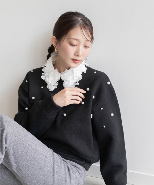 ◆2024AW新商品◆ 胸元にランダムに散りばめた大小のパールが煌びやかな輝きを放つニット。 程よい肉感のある厚みで自然な立体感を演出。 秋冬のスタイリングに取り入れたい華やかな1着です。 POINT ・胸元に散りばめられた華やかなパールデザイン ・程よい肉感のある厚みで自然な立体感を演出 ・好みの丈感で着られるFREEサイズ、FREE TALLサイズの2サイズ展開 ・抜け感のある程よくフィットするシルエット COORDINATE デニムやパンツを合わせてパールニットを主役にしたり、華やかなスカートに合わせても◎ 着回し力抜群なアイテムです。 ◆丈感が選べるサイズ展開◆ こちらの商品はお客様の身長に合わせて着丈がお選びいただけます。 身長が高めの方や、長めの丈で着用されたい方はFT(フリートール)サイズがオススメです。 - - - - - - - - - - - - - - - 洗濯方法:手洗い可 透け感:なし 裏地:なし 伸縮性:あり 生地の厚さ:普通 - - - - - - - - - - - - - - -