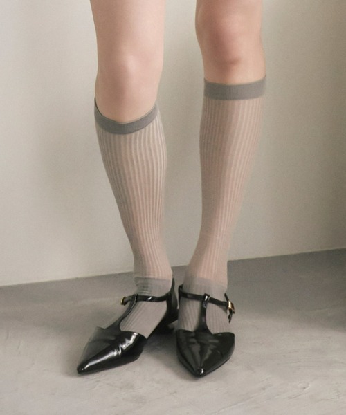 トレンドの透け感がポイントのシアーソックス ミニ丈のボトムに合わせるだけで 一気にトレンドコーデが完成するシアーソックス。 合わせるシューズを選ばないので、幅広いコーデに合わせていただけます。 Tストラップエナメルパンプス(OL24OIB34)や プラットフォームローファー(OL24OIG24)と合わせて 着用いただくのがおすすめです。