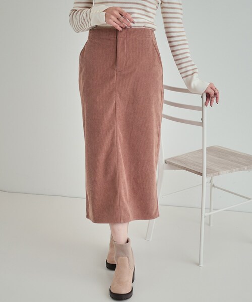 【デザイン】 暖かみを感じる柔らかな裏起毛のコーデュロイ素材で、ウエスト部分は総ゴムの仕様なので楽に穿いていただけます。 長すぎないシルエットとバランスの良いスリットが大人っぽいシルエットを際立たせてくれるので、大人っぽくキレイに穿きこなしていただけます。 ※ポケット数:横×2 後ろ×2 【スタイリング】 ロンTと合わせたり、裏毛のスウェットと合わせても女性らしい大人カジュアルな着こなしになります。 ローゲージのニットカーディガン合わせなどもこなれた印象になりおすすめです。 【素材】 きれいめに穿ける柔らかい裏起毛のコーデュロイ素材です。 ※裏地なし ※照明の関係により、実際よりも色味が違って見える場合があります。また、パソコン・スマートフォンなどの環境により、若干製品と画像のカラーが異なる場合もございます。 モデル情報:身長163cm B81 W59 H88 着用サイズ:02(M) 店舗へのお問い合わせ商品番号:C62-79015 ●製品寸法: 01(S):W65~97cm 総丈80cm 02(M):W68~100cm 総丈81cm 03(L):W71~103cm 総丈82cm 04(LL):W74~106cm 総丈83cm 備考:
