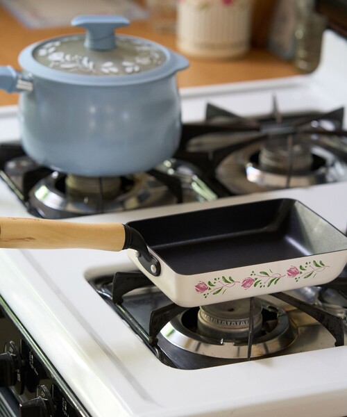 かわいらしい見た目と機能性を両立した、IH対応のエッグパンです。 フランス語で花を受け継ぐという意味のエリタージュフルール(he‘riter des fleurs)シリーズからの展開。上品なフラワーモチーフをあしらい、持っているだけで気分の華やぐデザインに仕上げました。持ち手部分にはアフタヌーンティーのロゴを配し、さりげないアクセントを効かせています。 玉子焼きはもちろん、ちょっとしたお弁当のおかず作りにも重宝する1台。お料理がこびり付きにくく、汚れが落ちやすいので毎日のお手入れも楽々行えます。これから新生活を迎える方へのギフトにも喜ばれそうですね。 *直火○、IH○(200V)、ハロゲン○、ラジエント○、シーズ○、エンクロ○、電子レンジ×、ディッシュウォッシャー×、オーブン× *保存容器ではありません。鍋の中に長時間料理を放置しないで下さい。表面加工の劣化の原因になります。 *天ぷら、揚げ物料理には使用しないでください。 *1点ごとに柄の出方が違うことがあります。 *容量650mL