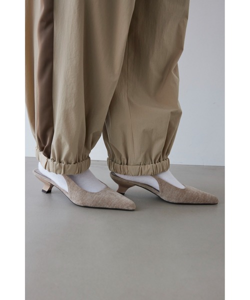 起毛感のある素材がシーズンムードを高めてくれるミュール。つま先のとがったポインテッドトゥが洗練された印象を与えます。程よいフィット感を与えるストラップ部分のゴム仕様がポイント。スカートはもちろん、パンツスタイルと合わせたコーディネートもおすすめです。※モデル着用画像はイメージのため、実際の商品のお色と異なって見える場合がございます。商品の詳細画像が実際の商品により近いお色となります。