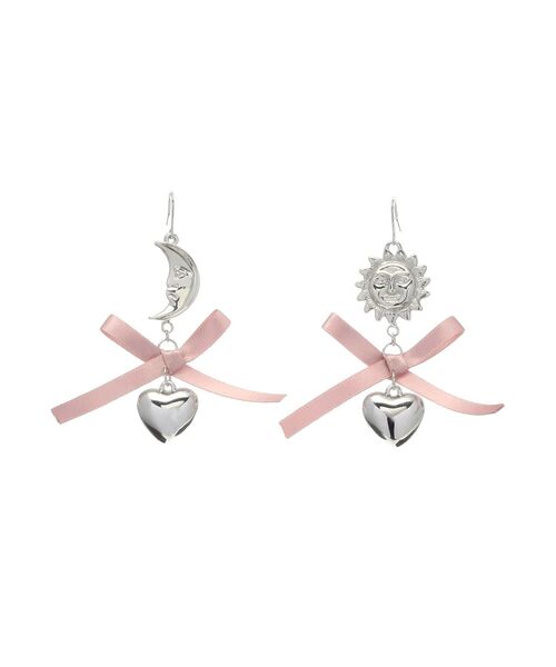 EVRIS(エヴリス)オリジナルで作成したピアスです。トレンドの、リボン・ハートにEVRISで人気のサニーを付けて、かなり豪華で顔周りを華やかにしてくれるアクセサリーです。※SLVにはピンクのリボン